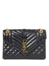 Yves Saint Laurent Logo Quilted Leather 24K Gold Plated Messenger Bag Black